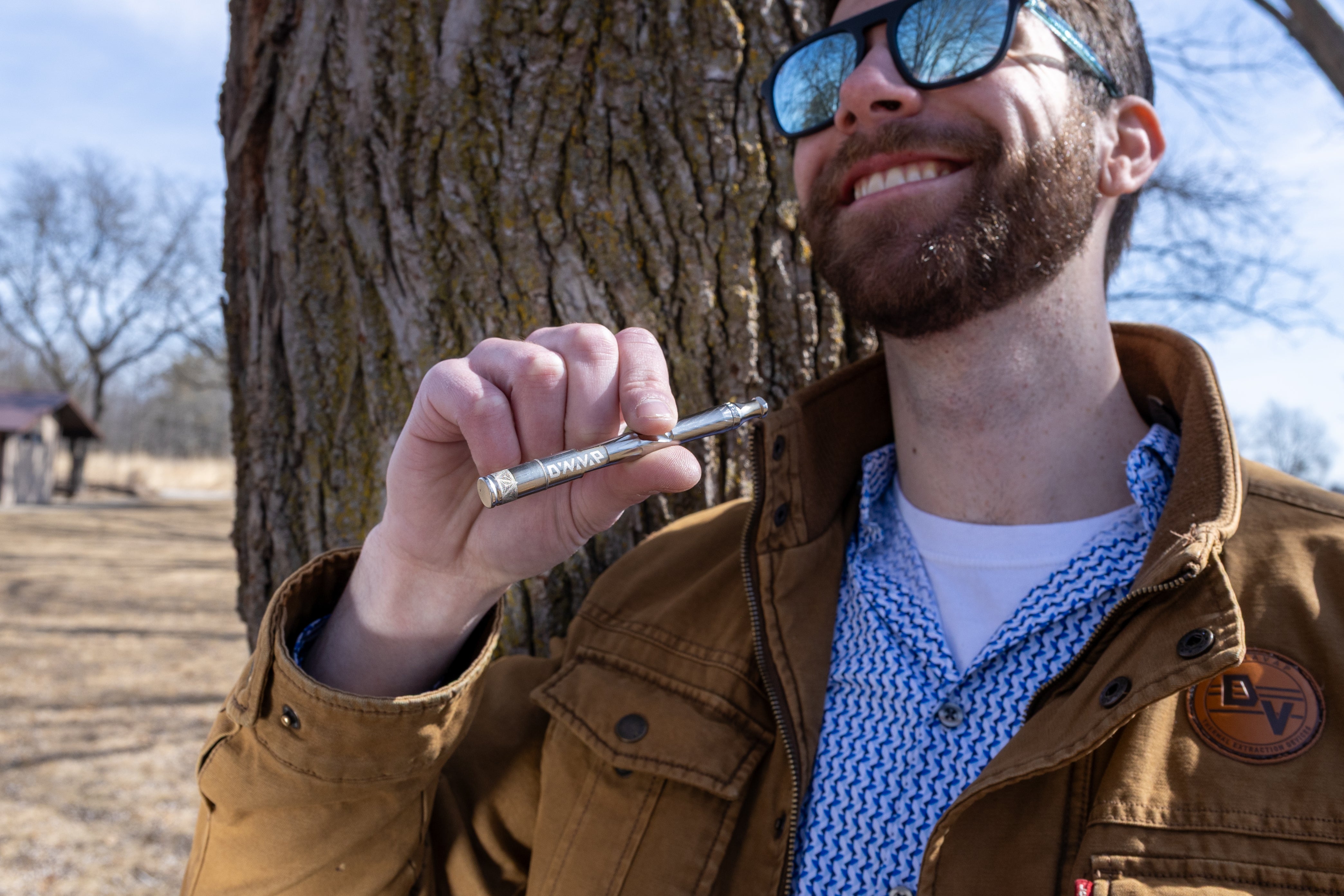 The "M" is easy to use and is built from medical grade stainless steel. Choose your preferred dosage by setting your Stainless Steel CCD in the correct notch. Once you're ready, you can utilize the chiral airports for adjusted airflow.